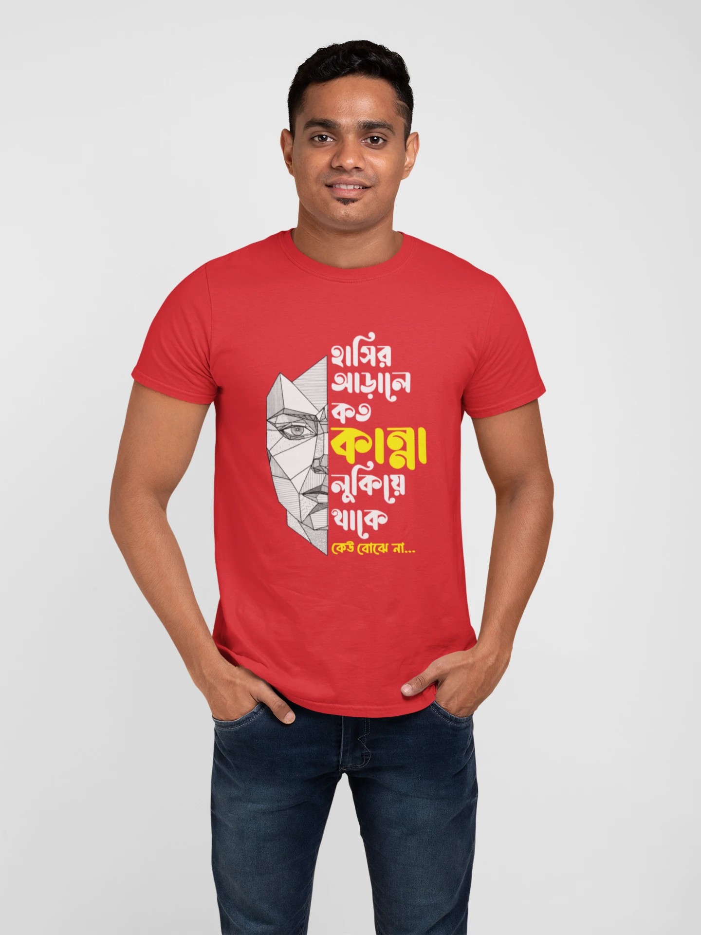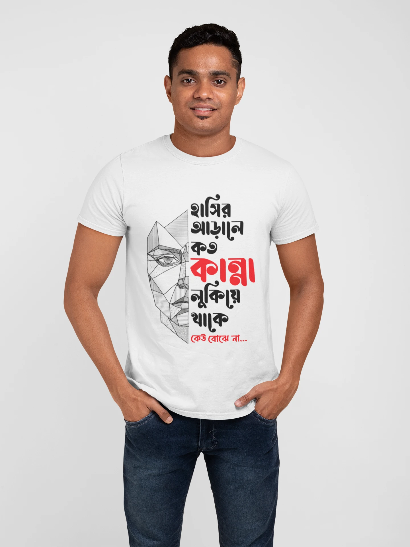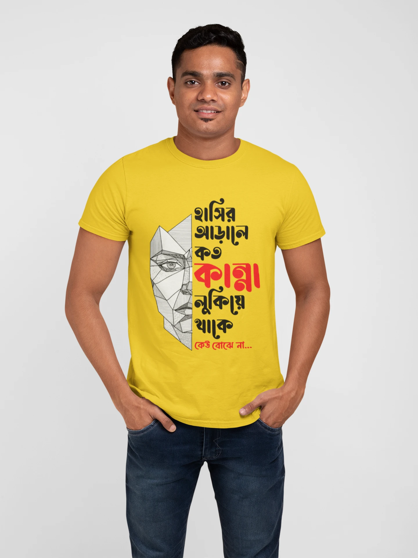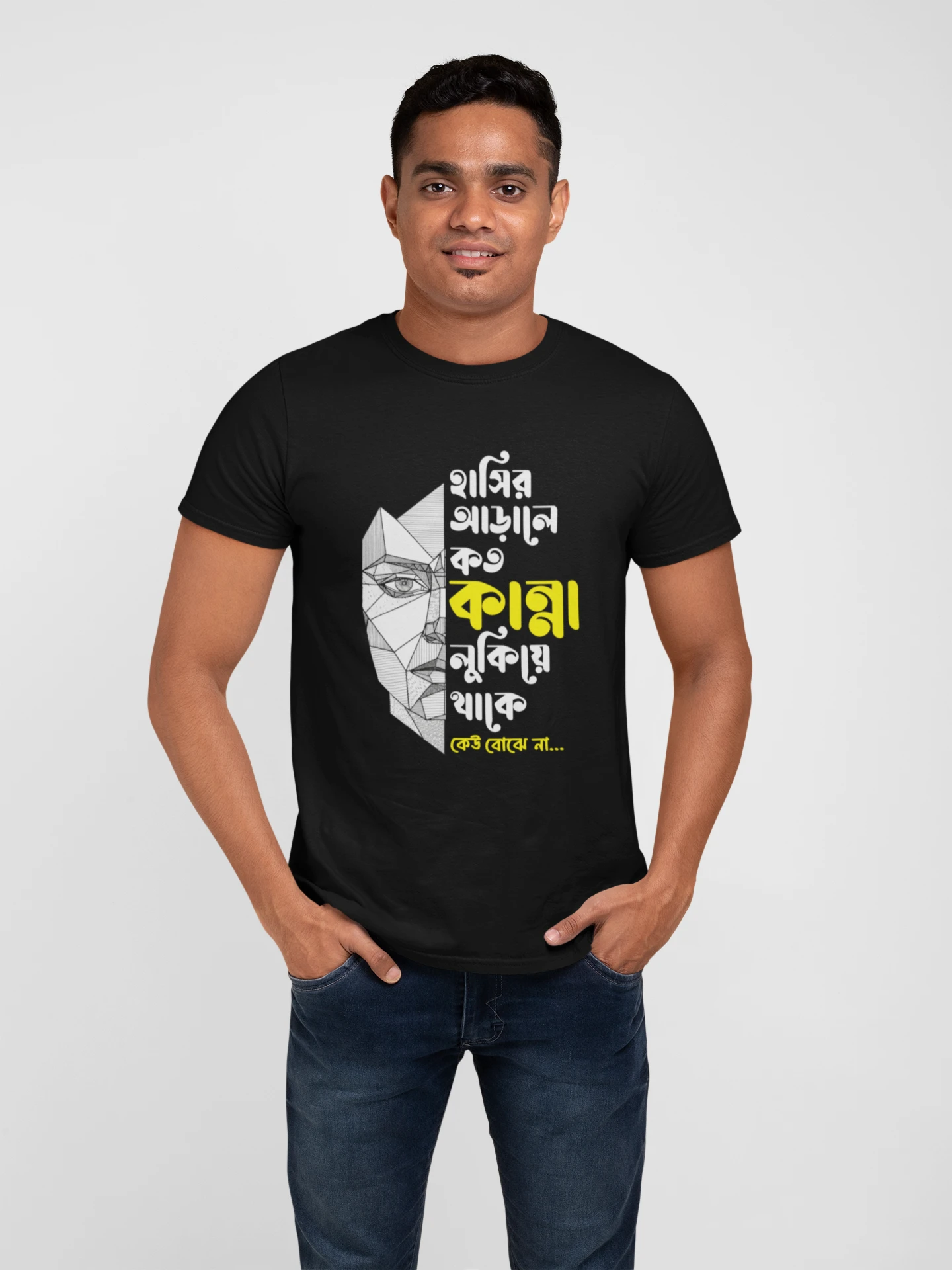 Hasir arale koto kanna lukiya thake keu bojhe na premium cotton half sleeve unisex t shirts